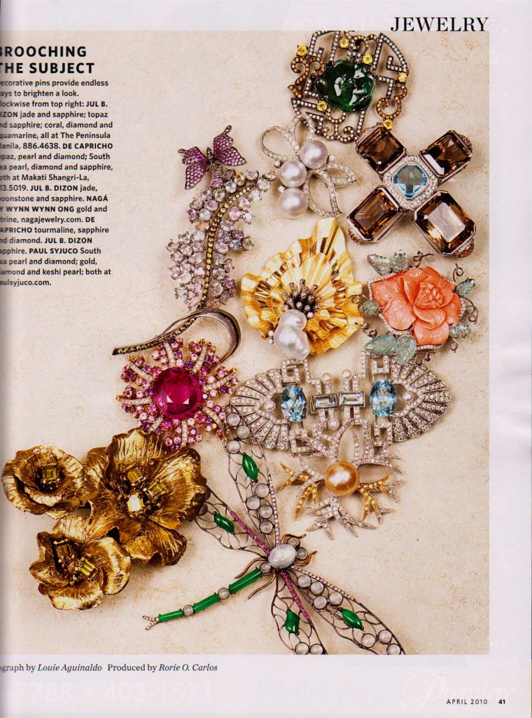 The folded gold and keshi pearl brooch in the center's mine as well as the diamond ribbon with three white south sea pearls on top of it. Thanks to Rorie Carlos and Louie Aguinaldo!