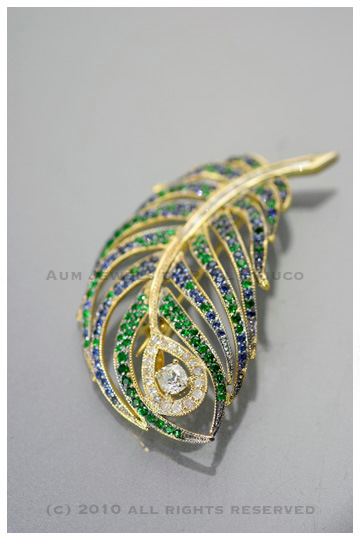 Not the turkey. But something commonly related with vanity; the peacock. The attributes of this bird goes beyond beauty though. Because of the eye-like patterns on its feathers, characteristics of awakening, protection and holiness were derived and attached to the wearer as well. The colors reflect those of nobility. Peacocks are also known to eat certain poisonous plants without suffering any symptoms; hence they were oft represented as being immortal as well. But my favorite quality would be that of it possessing spiritual healing energy; aiding those seeking balance and harmony in their lives. Which proves that even in nature style and substance really can exist together. And here is our tribute to the peacock. A bespoke brooch using antique diamonds and pave of blue and green sapphires in yellow gold.