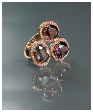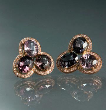 *inset are earrings with trios of multi-colored spinels and diamonds in rose gold.