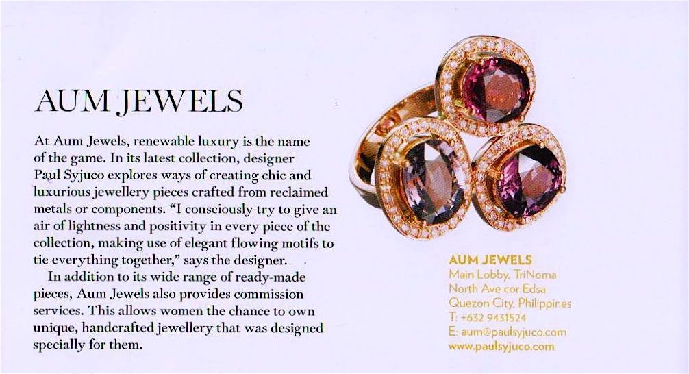 Paul: I guess upcycling is a good way to describe it. I consciously tried to use the refined metals and turn them into contemporary pieces that are more updated in look and feel. In the Philippines, some people have heirloom pieces they don’t want to use because of outdated designs, so they would have them reworked into newer pieces using some of the recovered gold and gems. It is not really a new idea. But here with our collections, we wanted to focus more on using reclaimed metals as our primary ingredient and translating our inspirations through the medium. And also to show jewelry from repurposed inputs don’t need to have a shabby-chic aesthetic.